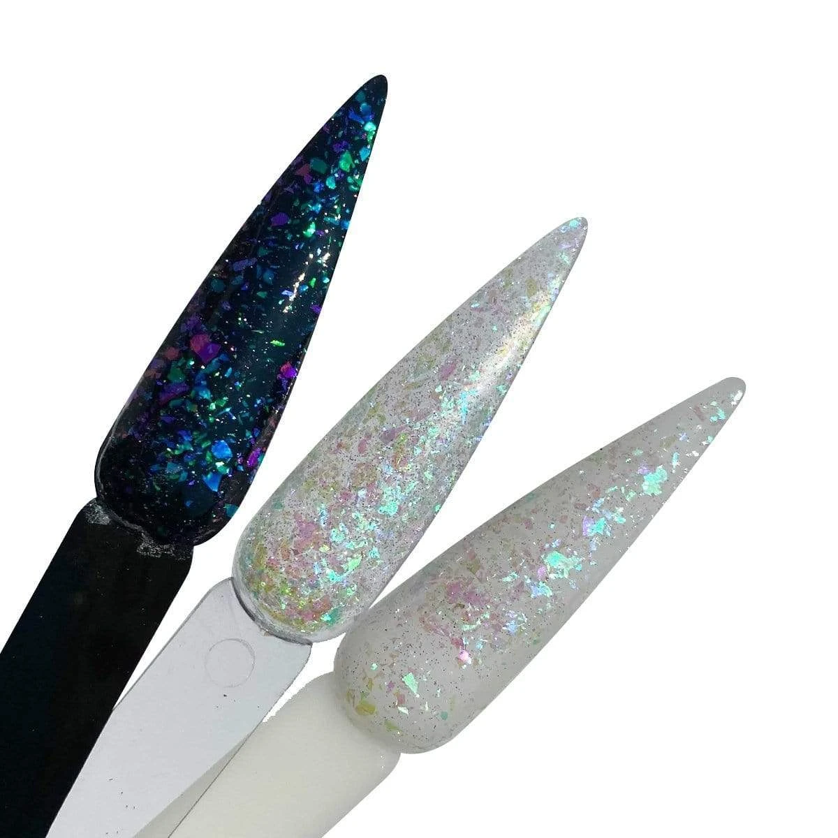Flakes are a bit different than the typical glitters you’ll find in Dip Powder. Flakes are well, flakey. They’re a new way to add a dimension and a bit of multifaceted glitz to your manicure. Flakes need a little extra care when it comes time for buffing, so don’t hesitate to add an extra layer of D75 Vivien (Clear) (or two) when adding flakes to your manicure. To help your flakes add the most ‘wow’ factor to your mani, gently tap the side of the jar each time prior to dipping. This helps loosen the flakes and brings them to top so they’re ready to be picked up by your Pro Base. labryn