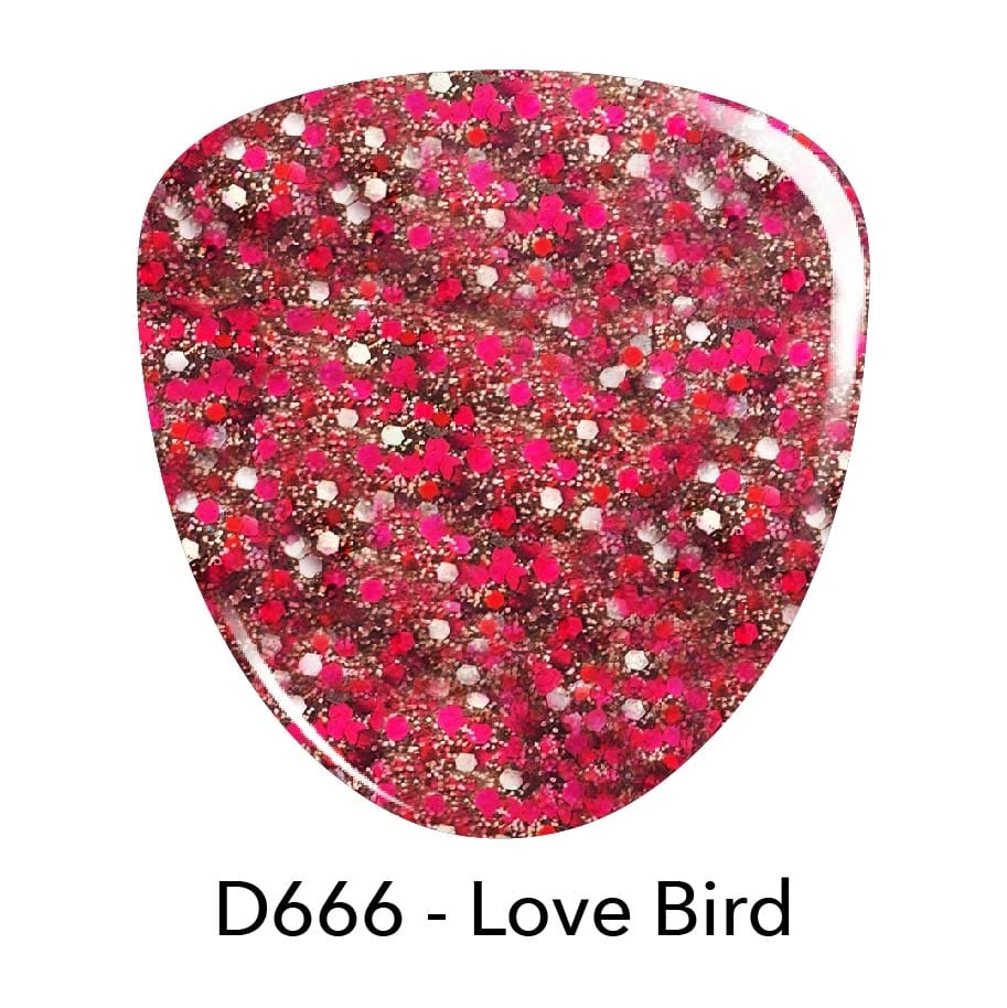 D666 Love Bird combines gold and red shimmers with gold and red holographic glitters in a way that makes our hearts flutter.