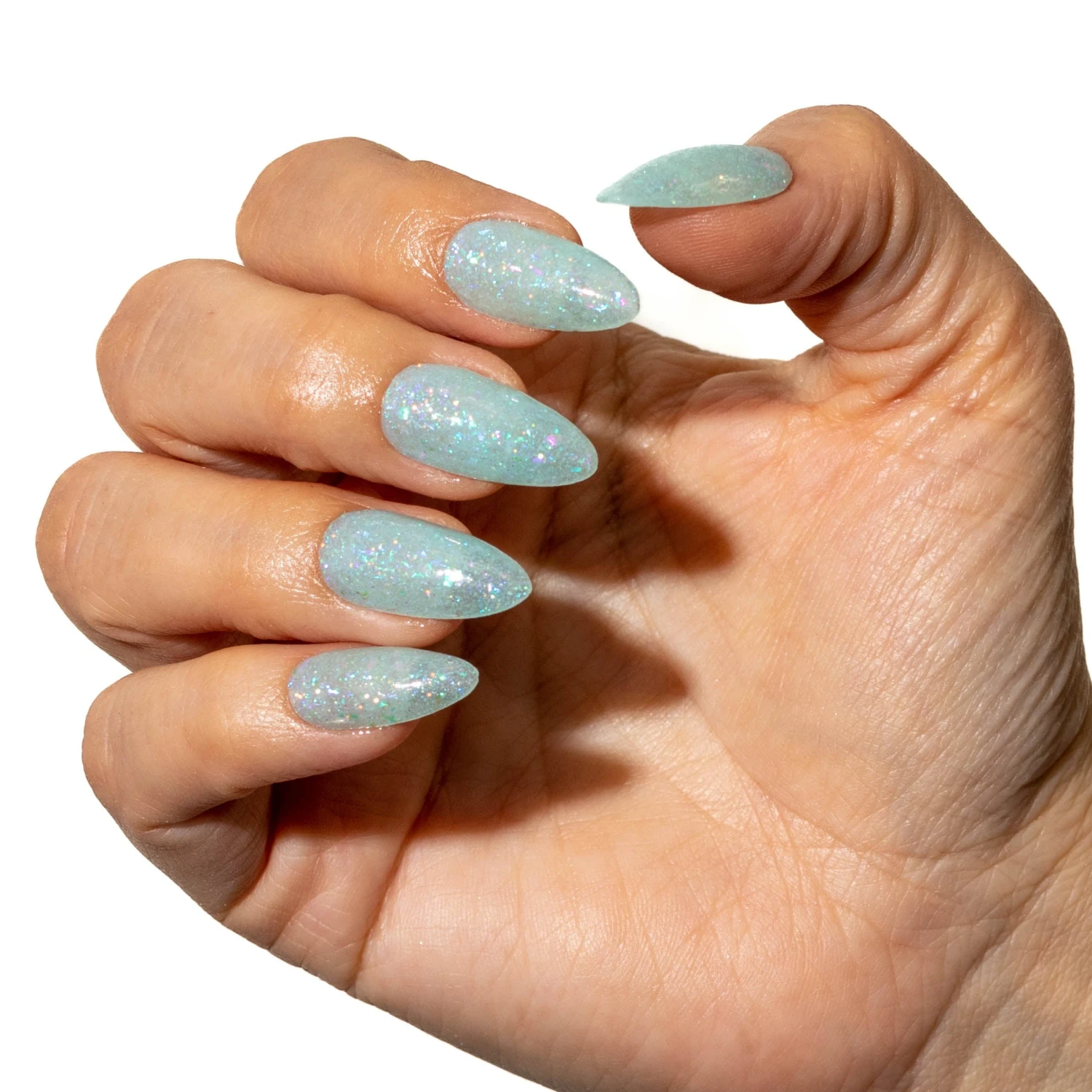 D862 Air Head is an aqua blue with glitters and iridescent flakes.