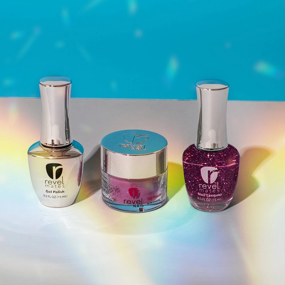 A 0.5 oz jar of Supernova Dip Powder and 15 mL of Supernova Nail Polish or 15 mL of Supernova Gel Polish.