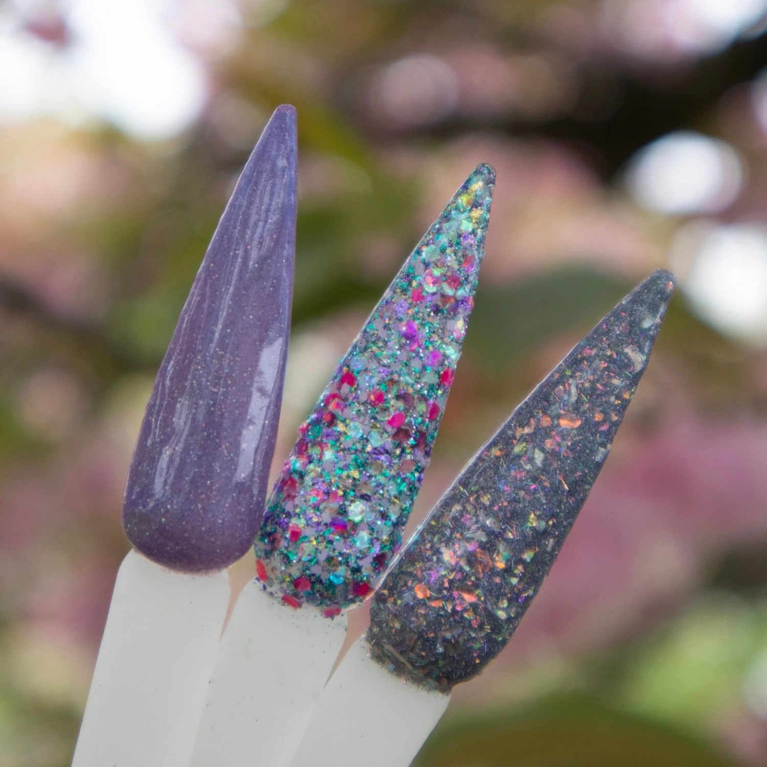 - D1087 “Book” Club is a mixture of multi-colored glitters, teal flakes and pink glitters.
