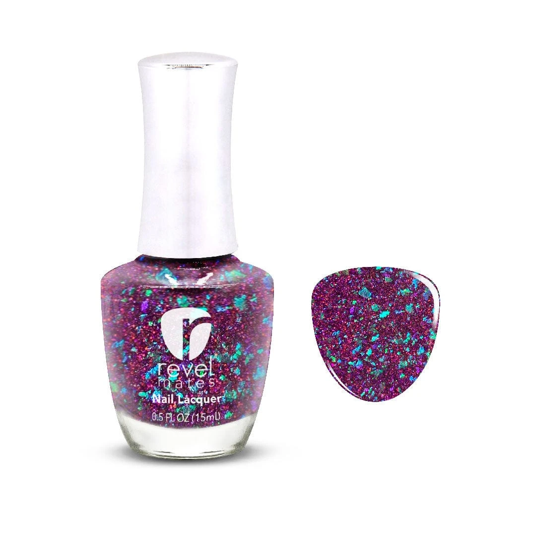 Seduce is a boysenberry purple with turquoise and green flakes.